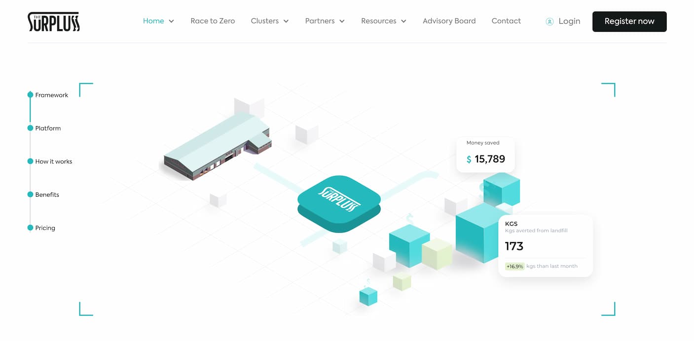 A screenshot from The Surpluss - the world's first B2B platform for surplus resource sharing. The Surpluss helps businesses to reduce waste and save costs by identifying unused resources within your business and finding new homes for them.