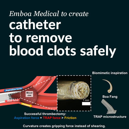 Emboa Medical’s new tool uses tiny, microscopic "teeth" that grip onto clots much better than old designs. This allows doctors to clear blockages in just one go, which can save lives.