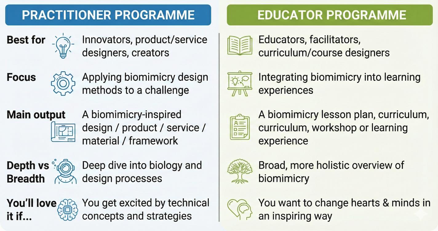 If you have a burning desire to dig into nature’s blueprints and emulate strategies directly - you might find the Educator Programme a bit too broad.