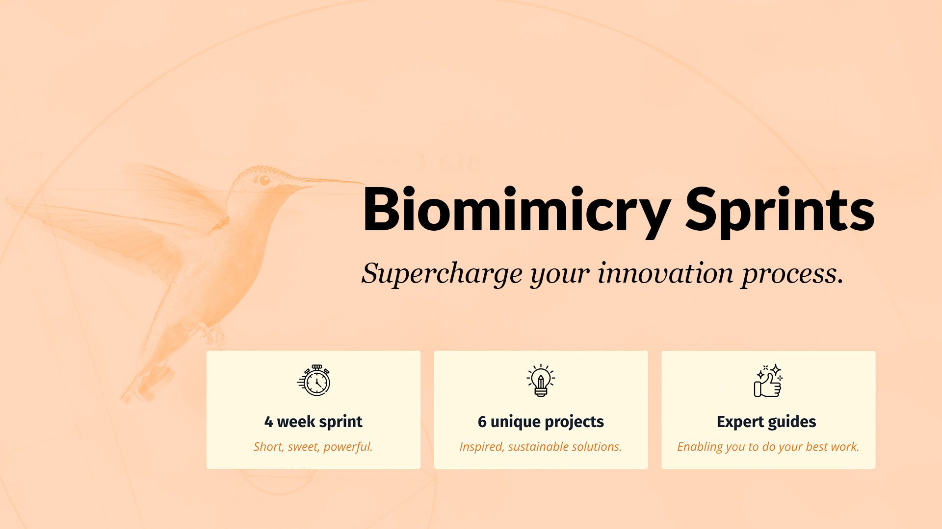 The Biomimicry Sprints is a 4-week, mentored course designed to let researchers fast-track their R&D work through the use of AI, discover biomimicry project concepts, iterate, compare and apply biomimicry in their work, fast.
