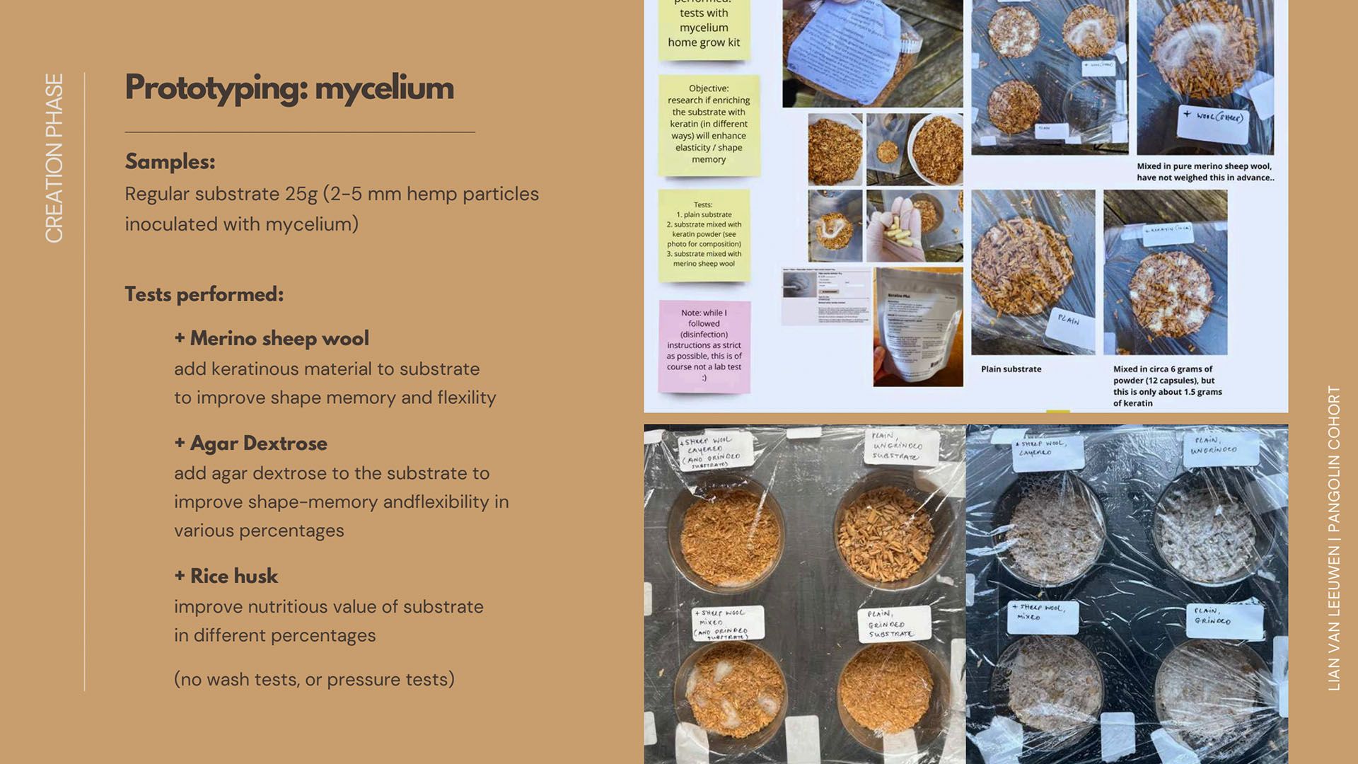 His research was based around the primary function of thermoregulation (i.e. insulation), but achieving this using life-friendly chemistry. He investigated a number of different biological models, from pomelo's to coconuts and, of course, mycelium.